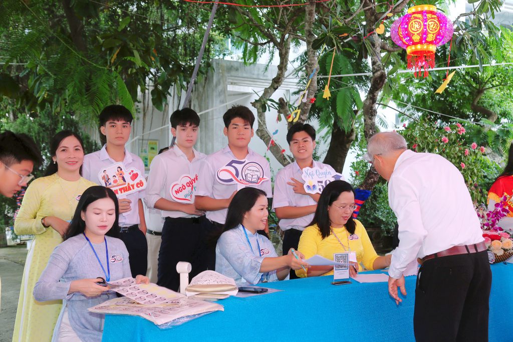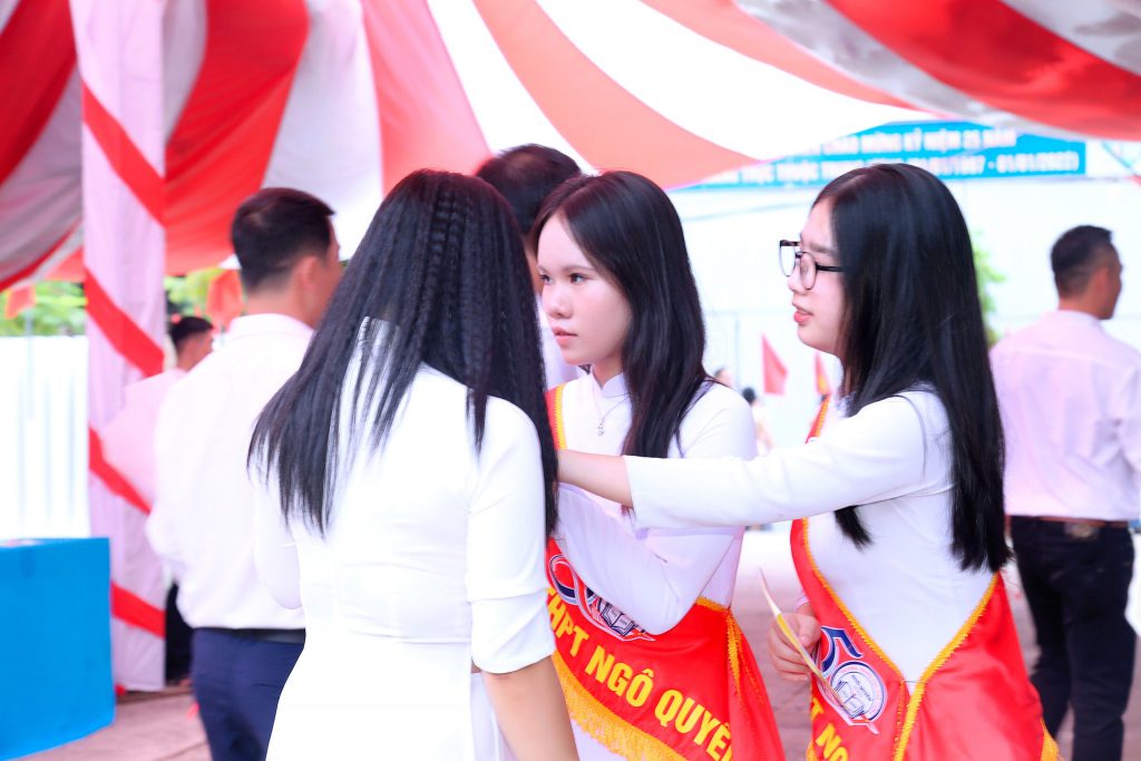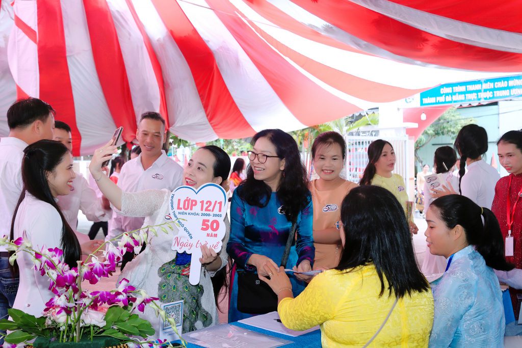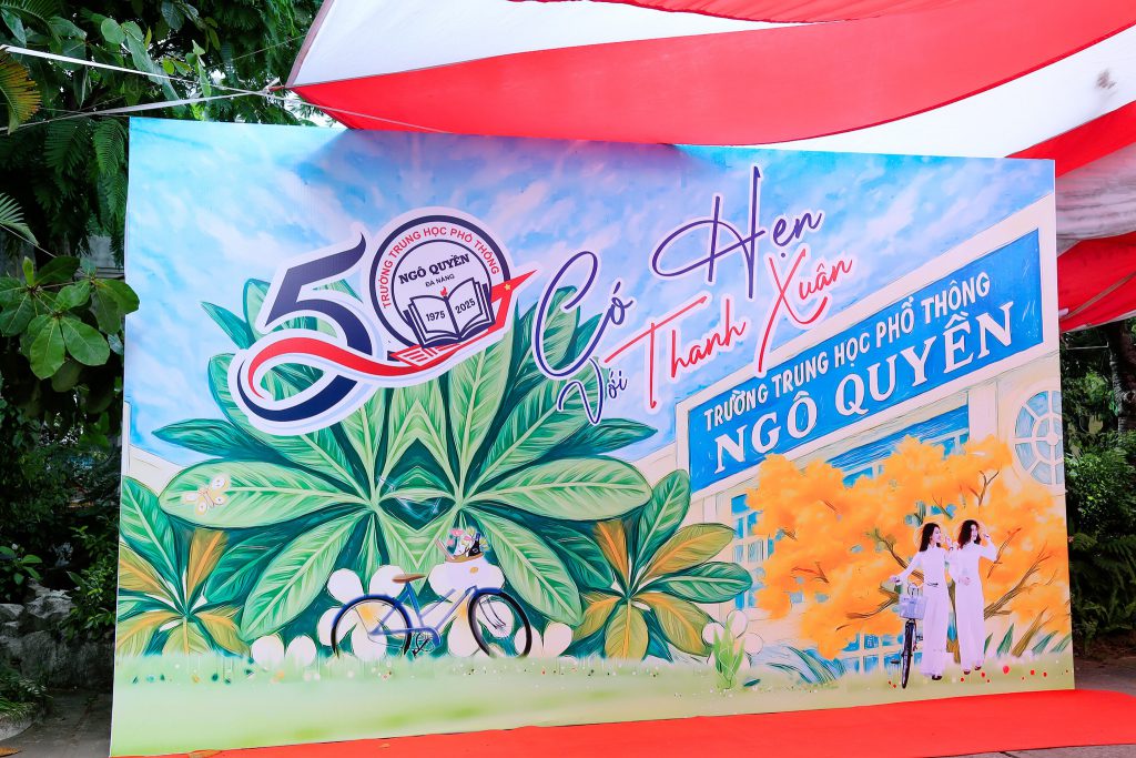 Chiều ngày 14/9/2025, trong chuỗi sự kiện chào mừng kỉ niệm 50 năm thành lập trường THPT Ngô Quyền, nhà trường đã tổ chức buổi gặp mặt các thế hệ giáo viên, nhân viên và cựu học sinh đã từng giảng dạy và học tập tại trường, thật sự là một dịp vô cùng ý nghĩa và xúc động đối với nhiều người. Ngay từ khi bước qua cổng trường, nhìn những băng rôn, hoa tươi và gương mặt rạng rỡ của những người tham dự đã tạo được không khí trang trọng nhưng cũng ấm áp, thân tình như một gia đình lớn tràn đầy niềm vui và hạnh phúc.