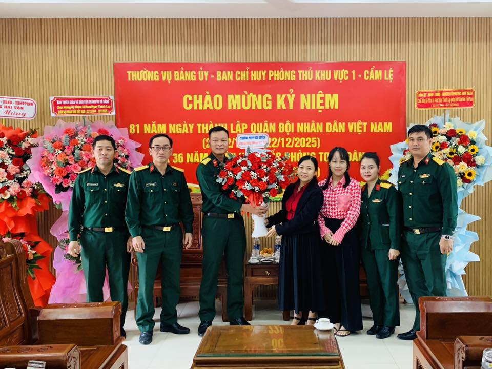 Nhân kỷ niệm 81 năm Ngày thành lập Quân đội Nhân dân Việt Nam (22/12/1944 – 22/12/2025) và 36 năm Ngày hội Quốc phòng toàn dân, cô Trịnh Thị Gấm – Phó hiệu trưởng nhà trường đại diện cho Ban giám hiệu cùng với cô Phan Trương Diệu Thúy – Bí thư Đoàn trường đại diện cho Đoàn Thanh niên trường THPT Ngô Quyền đã có buổi đến thăm và chúc mừng các chiến sĩ tại các đơn vị kết nghĩa.