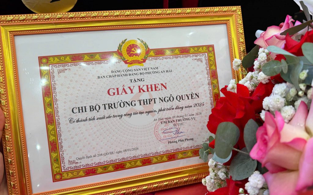 Ngày 28/1/2026, tại Hội nghị Tổng kết công tác xây dựng Đảng năm 2025, triển khai nhiệm vụ năm 2026 của Đảng uỷ phường An Hải, chi bộ trường THPT Ngô Quyền đã vinh dự nhận Giấy khen có thành tích xuất sắc trong công tác tạo nguồn, phát triển đảng viên năm 2025.Trong năm 2025, chi bộ trường THPT Ngô Quyền kết nạp 7 đảng viên mới trong đó có 5 học sinh, vượt chỉ tiêu được giao. Trong thời gian đến, chi bộ tiếp tục tạo nguồn, tạo động lực để các em học sinh có phẩm chất, lý tưởng tốt nỗ lực phấn đấu để xứng đáng đứng vào hàng ngũ của Đảng.