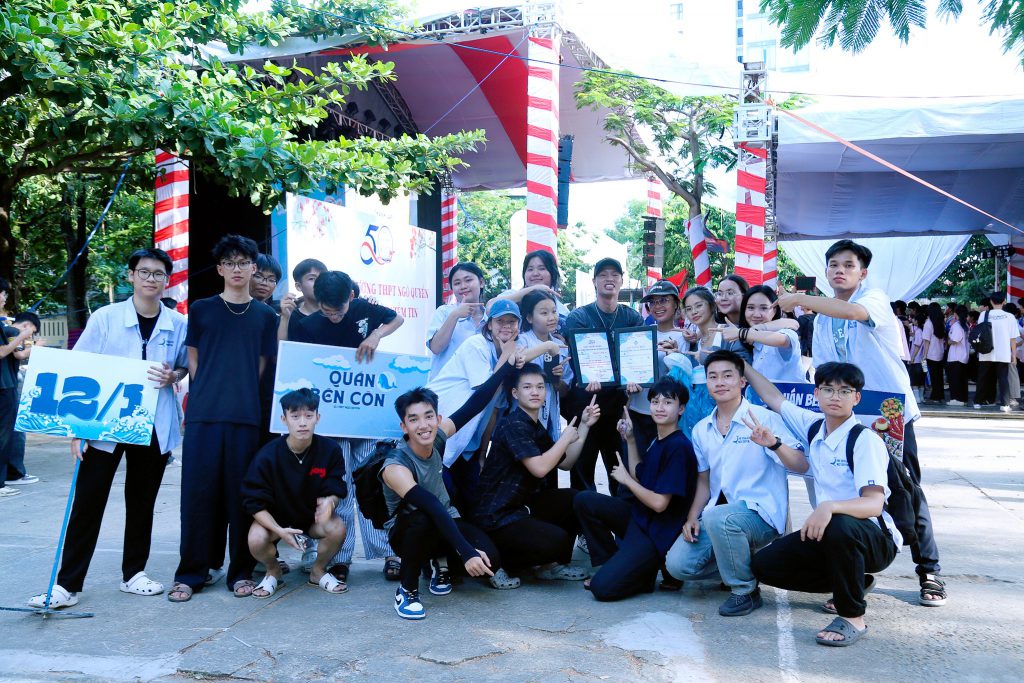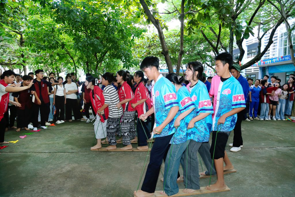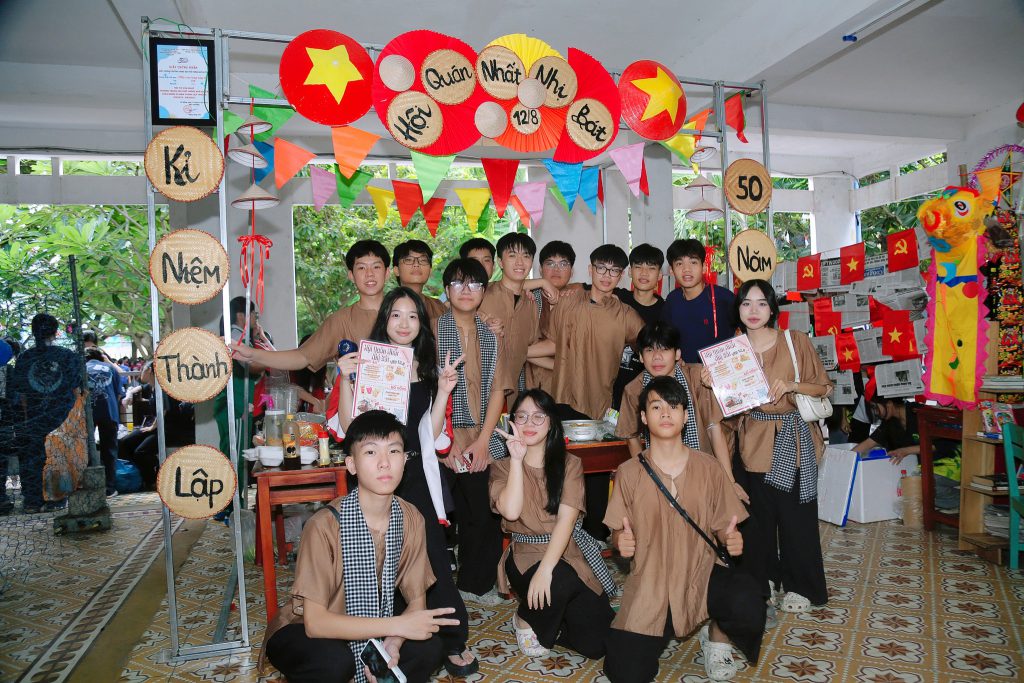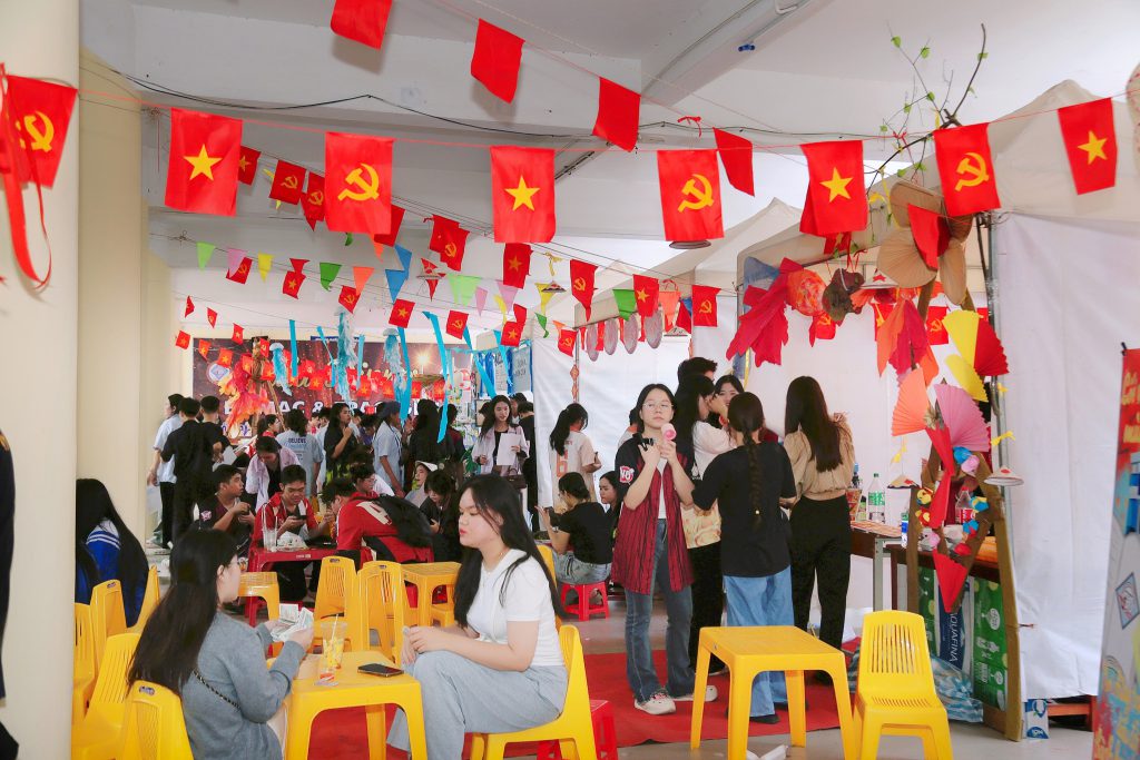 Từ sáng sớm, sân trường đã ngập tràn sắc màu cờ hoa, pano, áp phích kỷ niệm. Các hoạt động diễn ra sôi nổi và đa dạng như dân vũ, trò chơi dân gian và các gian hàng ẩm thực do các lớp tổ chức.