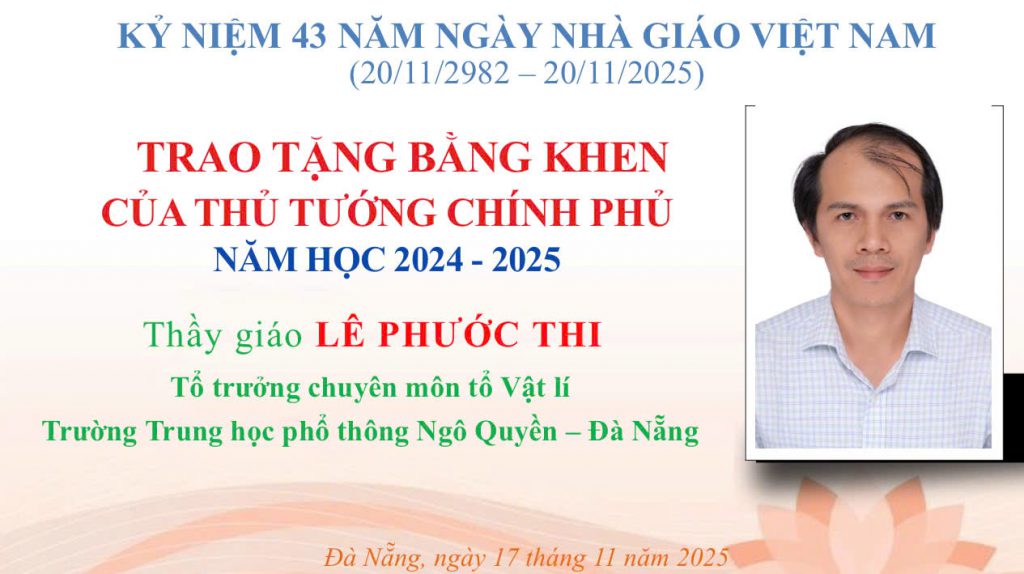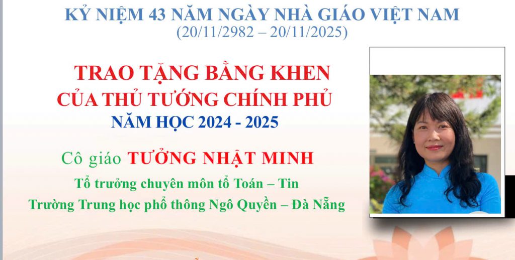 💐Nhà trường vô cùng vui mừng khi có đến bốn nhà giáo vinh dự được nhận bằng khen của Thủ tướng Chính phủ do đạt thành tích xuất sắc trong sự nghiệp giáo dục và đào tạo, góp phần vào sự nghiệp xây dựng Chủ nghĩa xã hội và bảo vệ Tổ quốc.