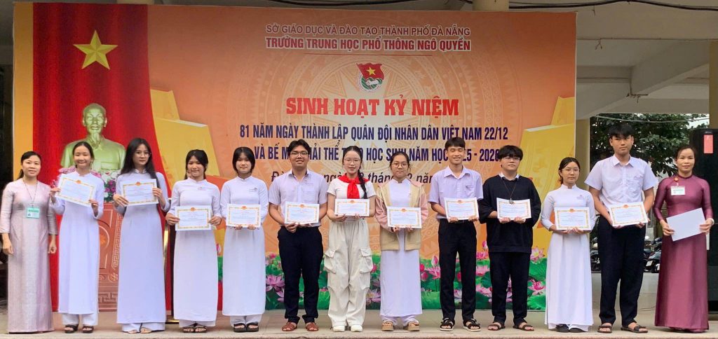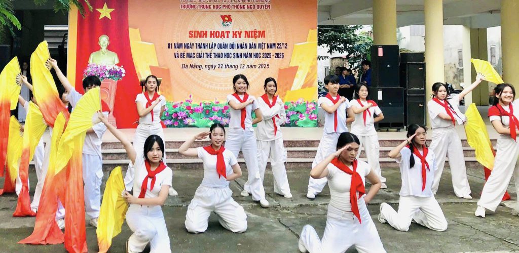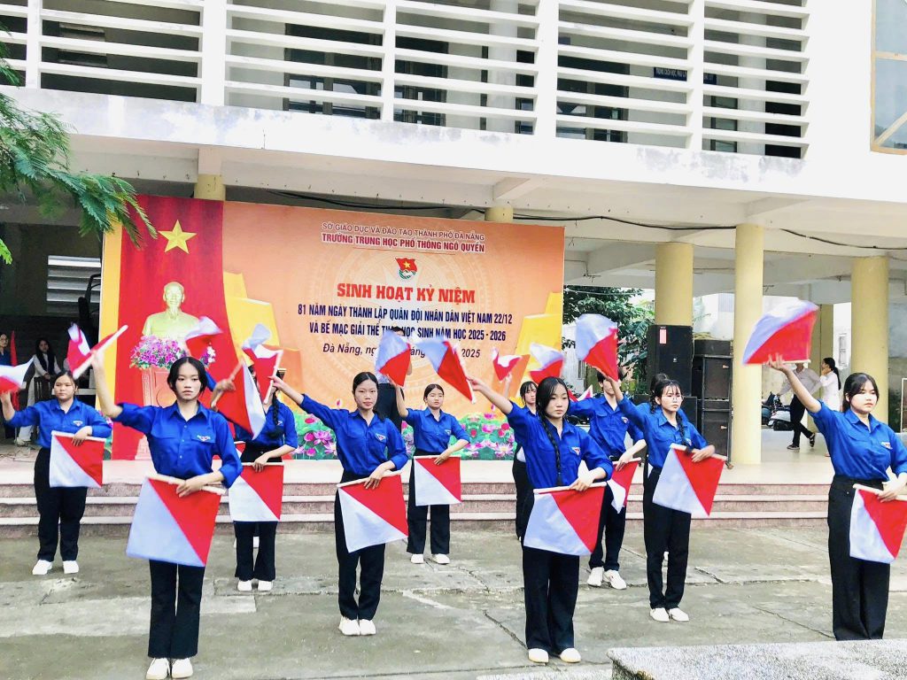 Ngày 22/12, trường THPT Ngô Quyền tổ chức sinh hoạt kỷ niệm chào mừng 81 năm Ngày thành lập Quân đội Nhân dân Việt Nam (22/12/1944 – 22/12/2025) trong không khí trang nghiêm, hào hùng cùng lòng biết ơn, lòng tự hào dành cho các thế hệ cha ông đã cùng nhau gìn giữ nền hoà bình của dân tộc.