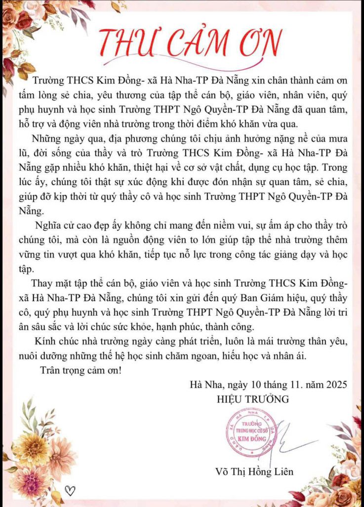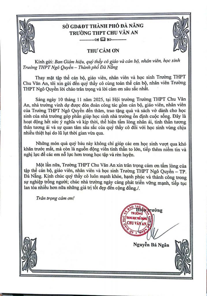 Chưa được phân loại Thư cảm ơn từ các trường trên địa bàn xã Hà Nha, thành phố Đà Nẵng 16 Tháng Mười Một, 2025 Trị Quản