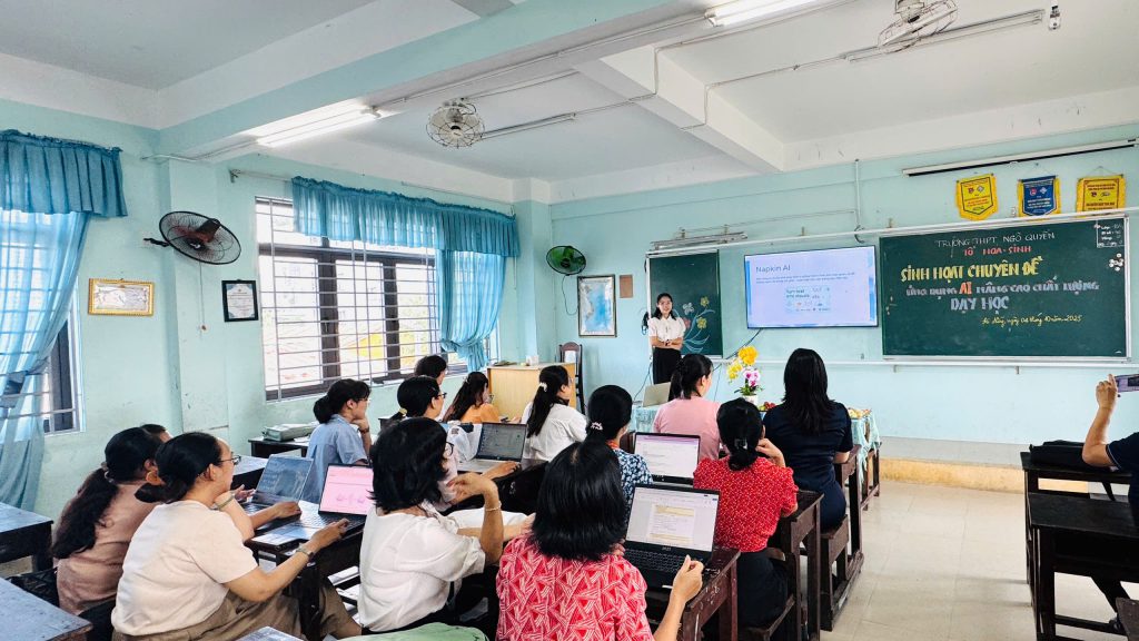 Thực hiện Kế hoạch số 116/KH-THPTNQ ngày 06/10/2025 của trường THPT Ngô Quyền về việc sinh hoạt chuyên đề và tham gia chương trình về ứng dụng trí tuệ nhân tạo trong dạy học, các tổ chuyên môn của nhà trường đã tích cực triển khai đồng loạt tổ chức sinh hoạt chuyên đề “Ứng dụng AI trong thiết kế bài giảng, nâng cao chất lượng dạy học”.